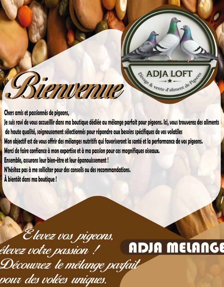 est une boutique spécialisée dans la vente de mélanges nutritifs, soins et accessoires pour pigeons. Guidée par une passion authentique pour l’élevage, notre mission est d’accompagner chaque éleveur dans la santé, la performance et le bien-être de ses volatiles.
